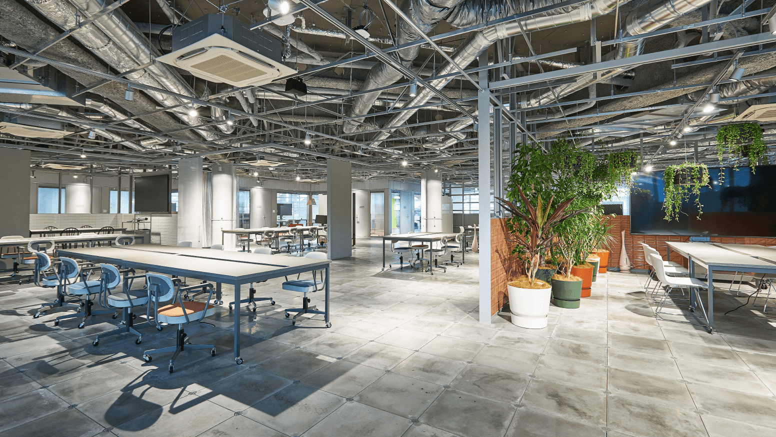 レンガ素材を用いた1階のコンセプトは「新たな出会いフロア」。周囲の人の活動が見渡せる空間で、志を持つ仲間・新しいアイデアや技術などと出会い、共創の第一歩へと繋がる場所です。