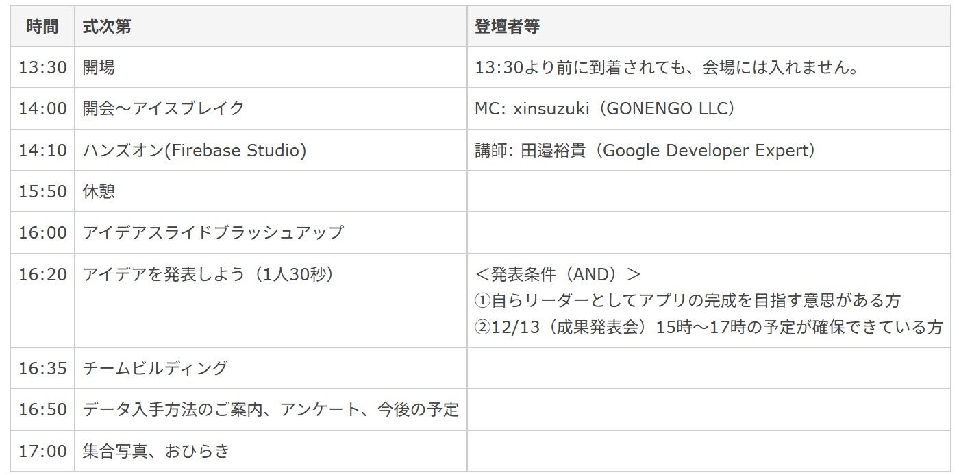 本キックオフイベントのみの参加は可能です。 次回以降(「ハンズオン・アイデアソン・チームビルディング」「中間発表会」「成果発表会」は、原則ご参加が前提です。