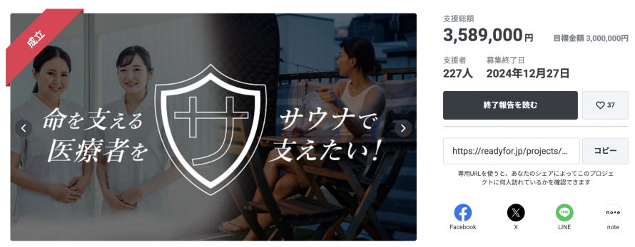 「命を支える医療者をサウナで支える」クラファンプロジェクトを介して、福利厚生サウナ、健康経営サウナ、防災サウナ、和温サウナなど、サウナの進化に取り組む。車椅子ユーザーや高齢者、介助者にも優しいサウナの安全工学を探求しつつ、サウナの新しい当たり前を創る。