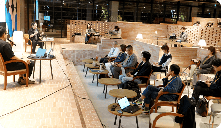 共創のきっかけを生み出すイベントを実現するために、会員のみなさんから持ち込んでいただいたイベント企画に対するアドバイスや、運営の支援を行っています。ピッチのみならず、事業開発、DX、デザイン、ものづくりなど分野別テーマのイベントや技術展示など、多様なイベントを通じて、学びや交流、共創の機会を提供します。