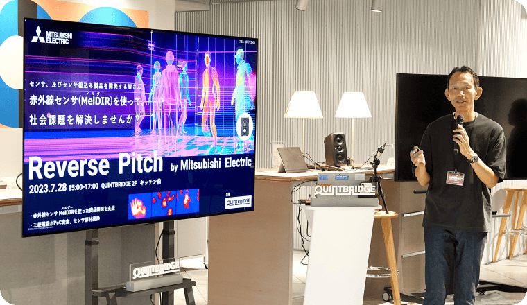 湯川大企業の課題やアセットを公開するリバースピッチで、新規事業の共創チャンスを発見できます。参加者だけでなく登壇企業も募集しているので、気軽にご相談ください!